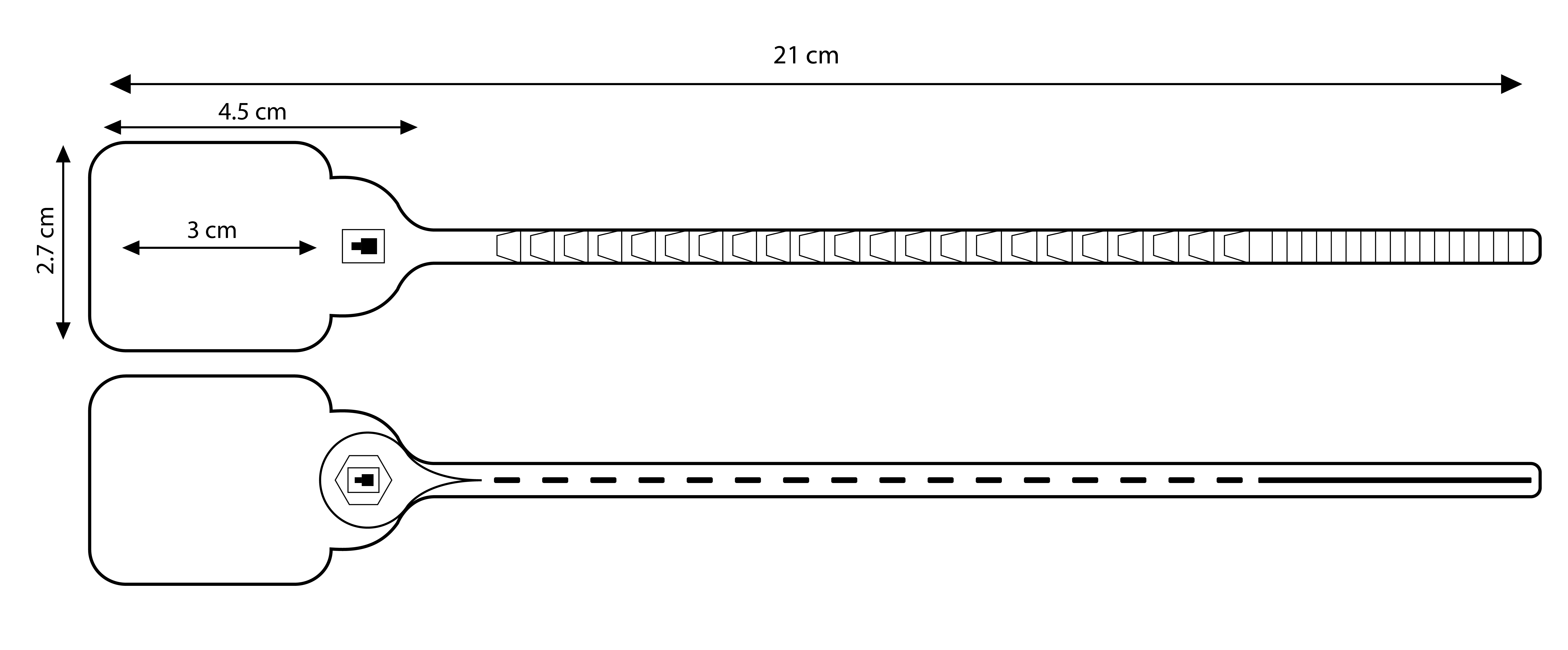 This is with standard number of 06 digits with a letter ‘ML’, made of Polypropylene body and metal locking bush with length of 300mm and thickness of 204mm. It is of variable length tightening and made of high-quality plastic incorporating stainless steel locking mechanism. The strap is smooth and flexible for easier handling and tightening. Meanwhile the locking mechanism is strong and weather resistant.
